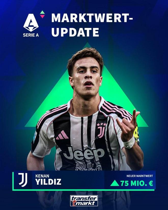 1. 凱南-伊爾迪茲(20歲,尤文圖斯) 7500萬(wàn)歐元