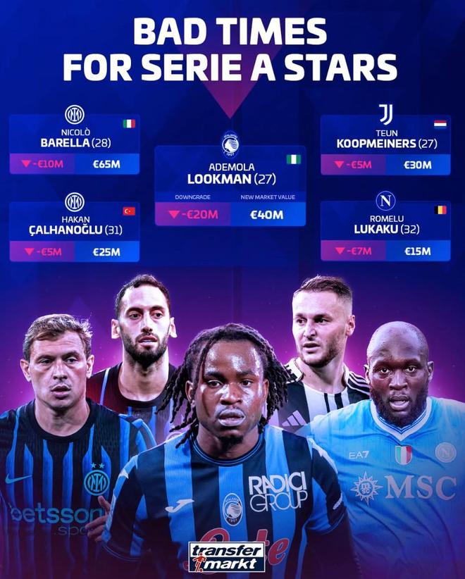 意甲身價(jià)跌幅榜:盧克曼跌幅最大,國(guó)米3人下跌1000萬(wàn)